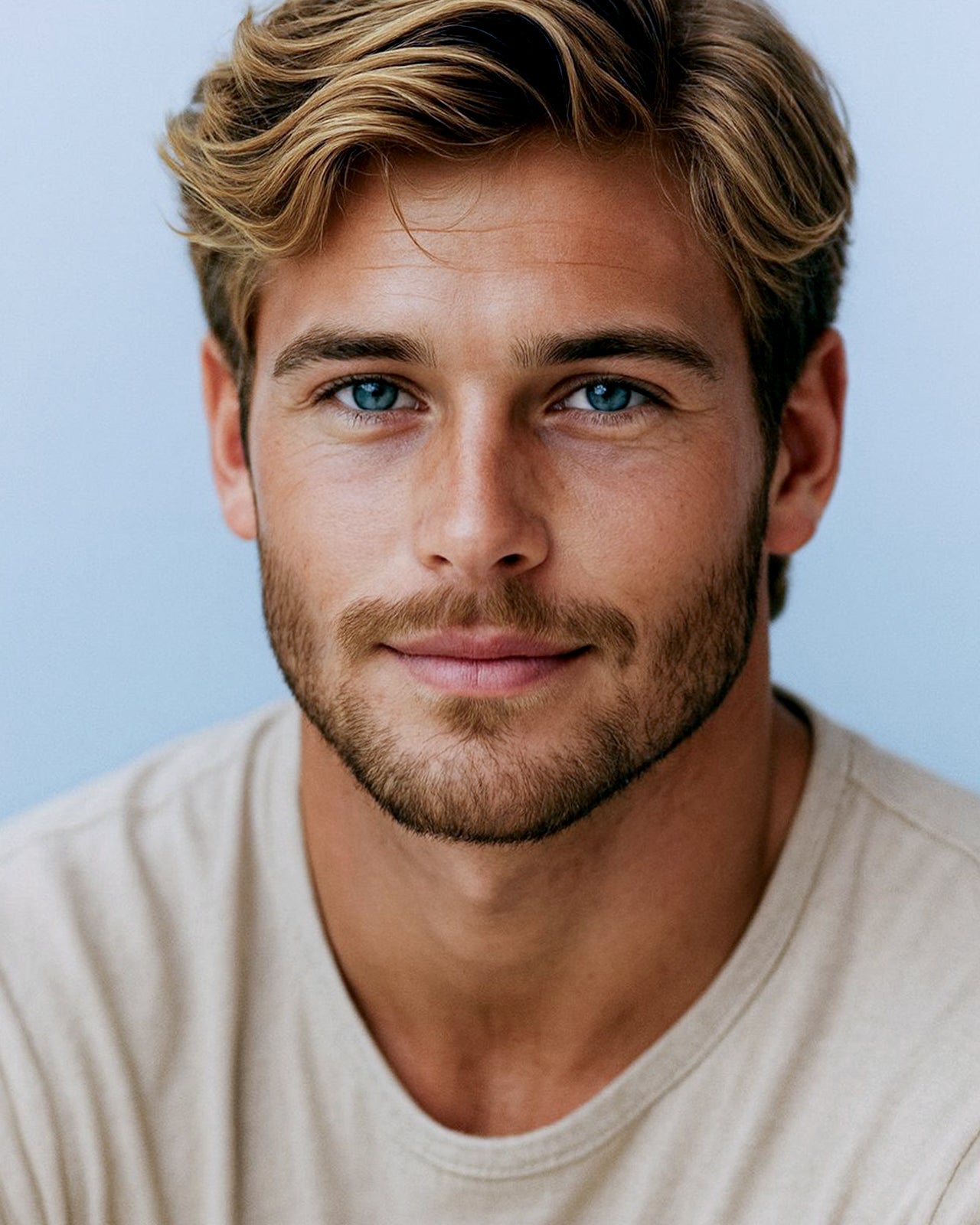 - high cheekbones, chiseled look